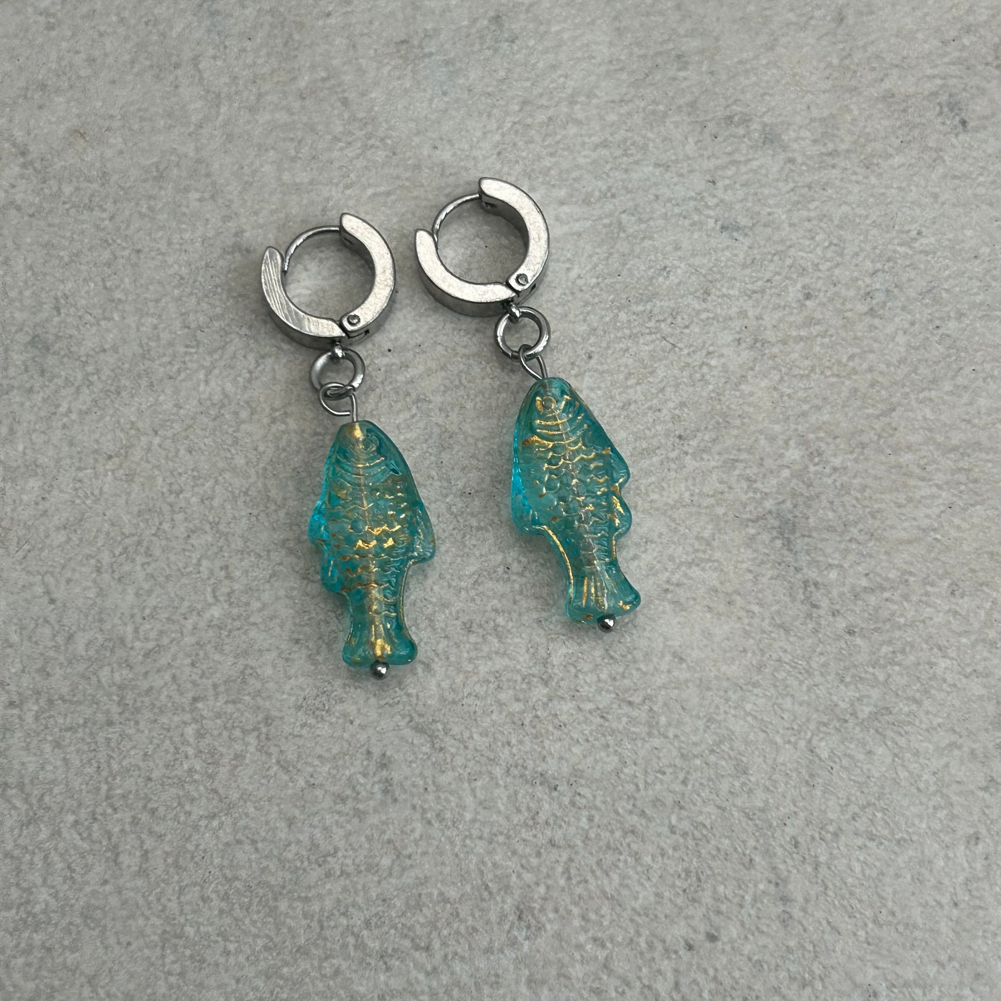 Stainless steel huggie earrings with czech glass fish beads
