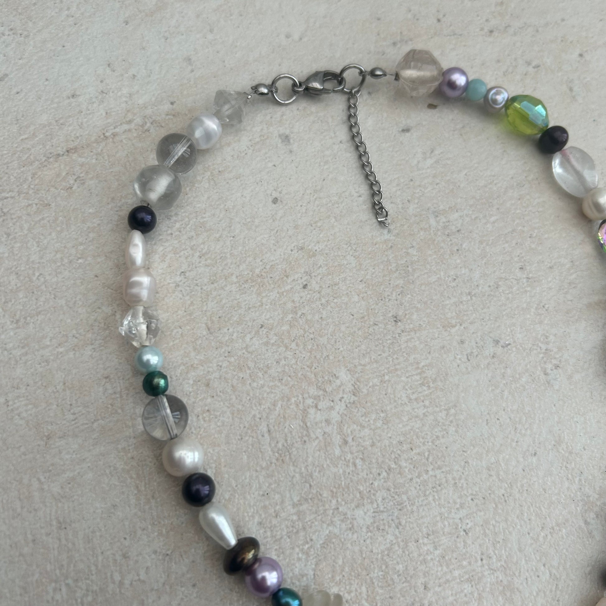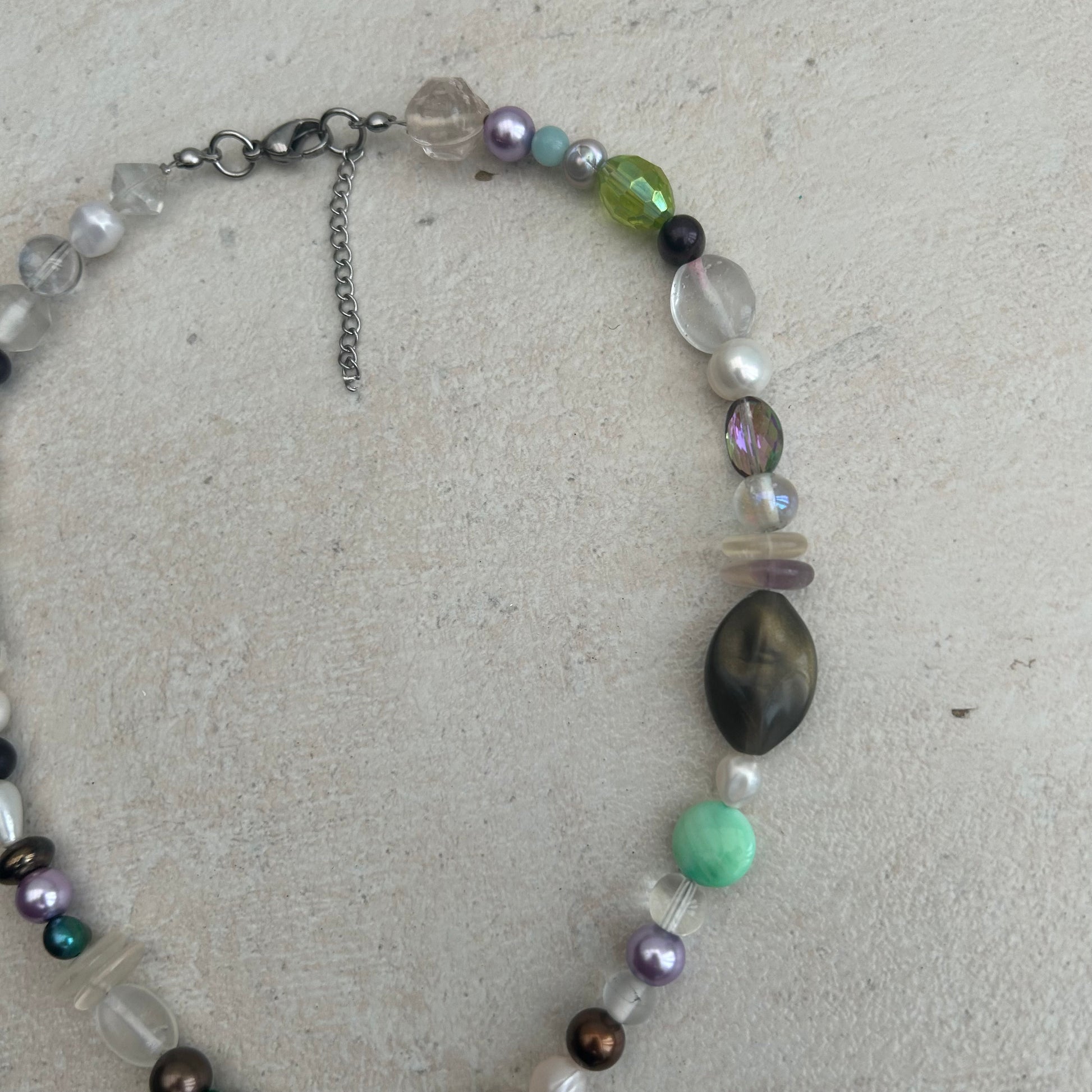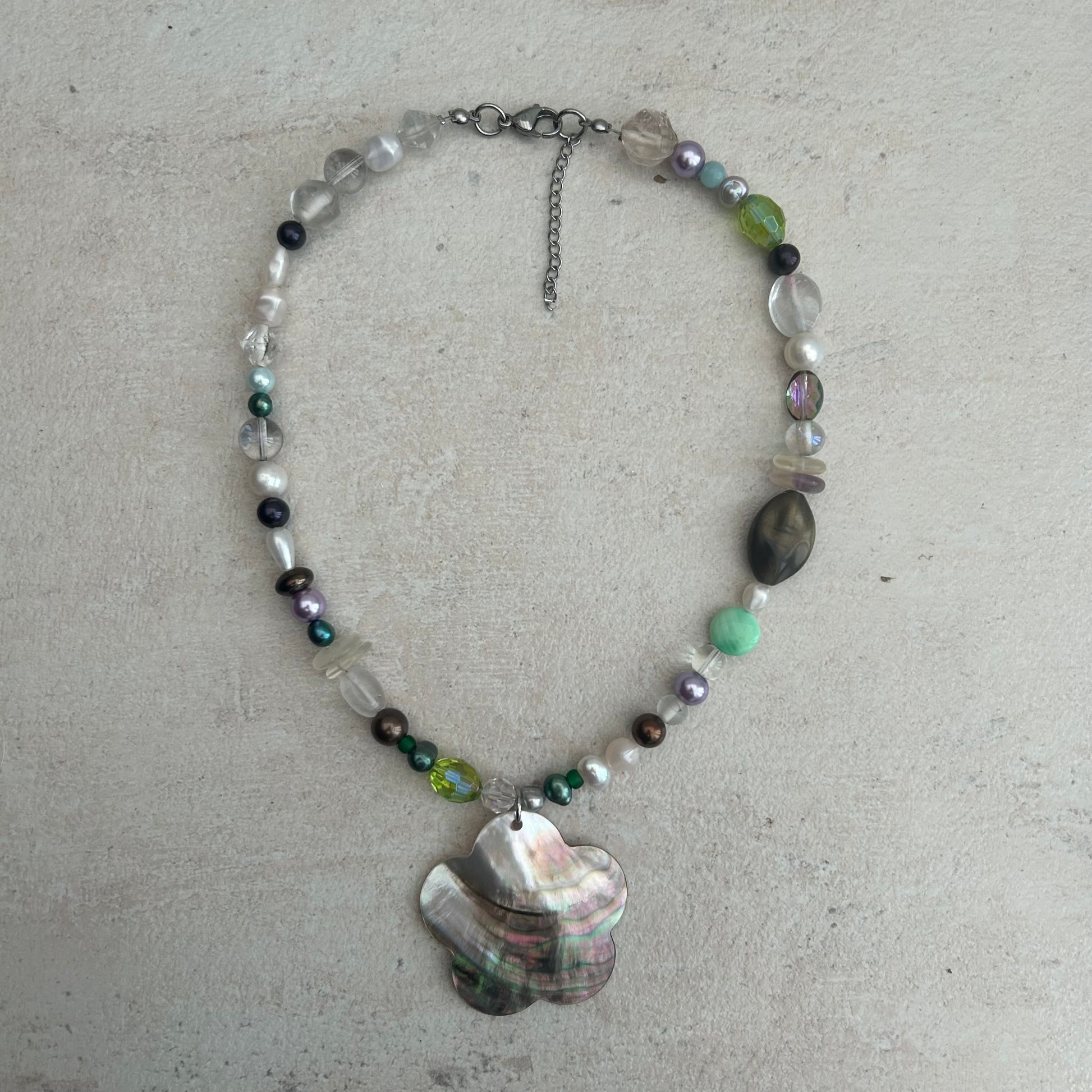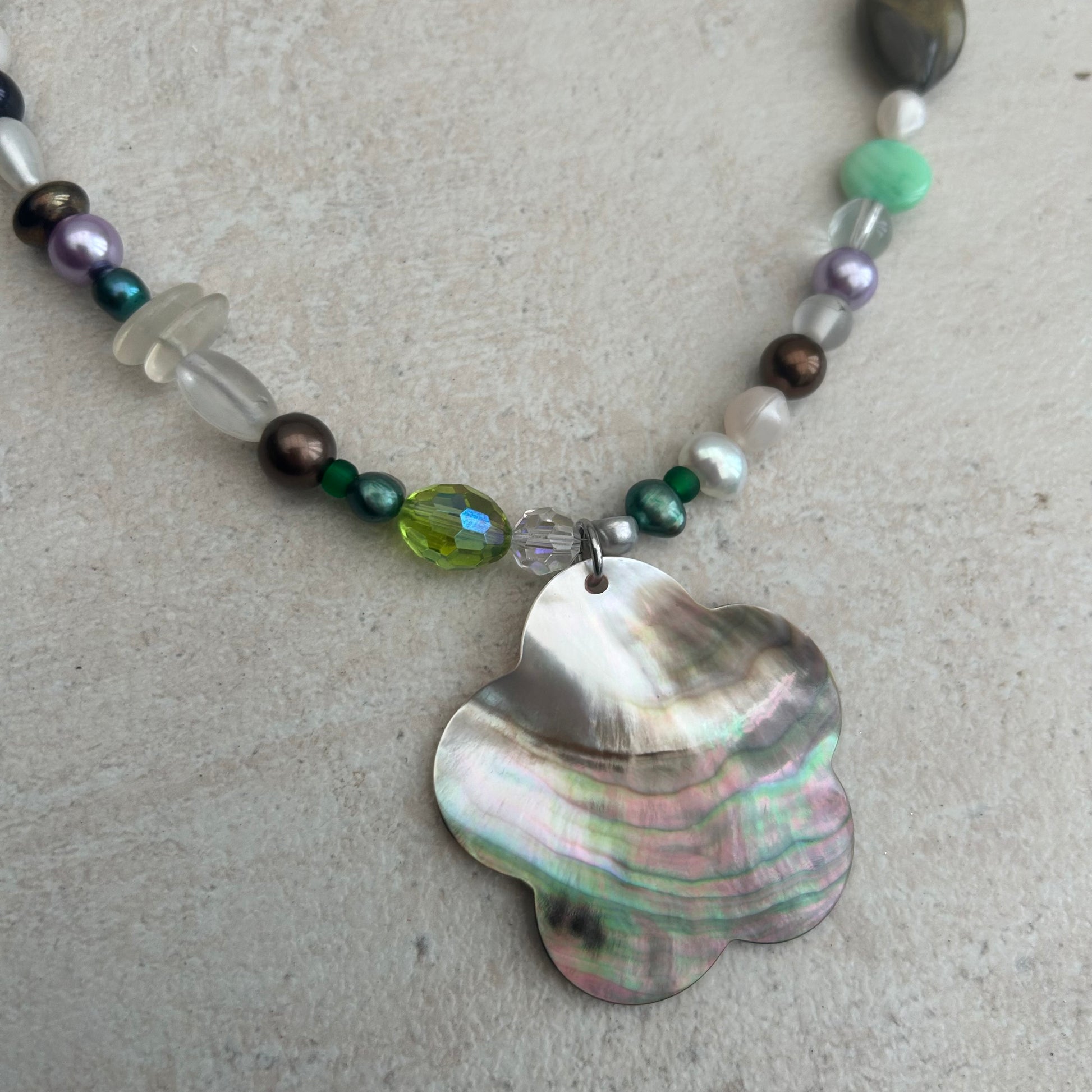 Mother of pearl glass beaded and freshwater pearls necklace