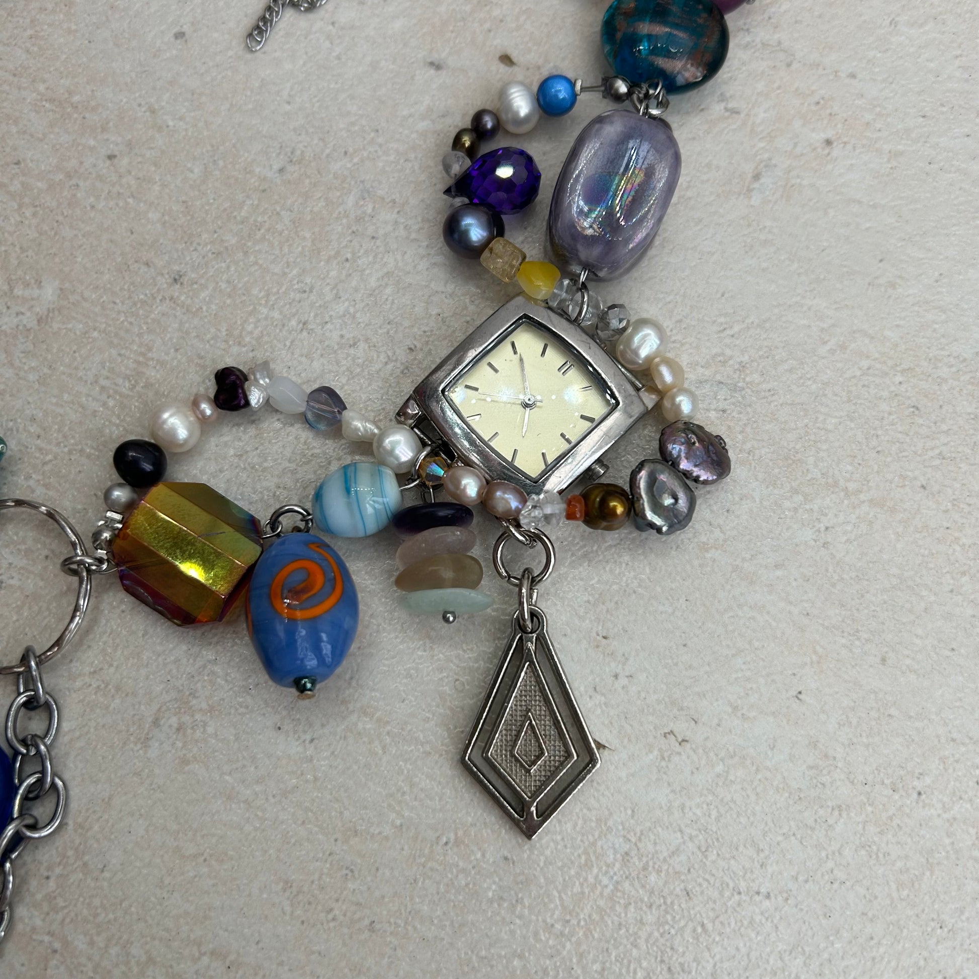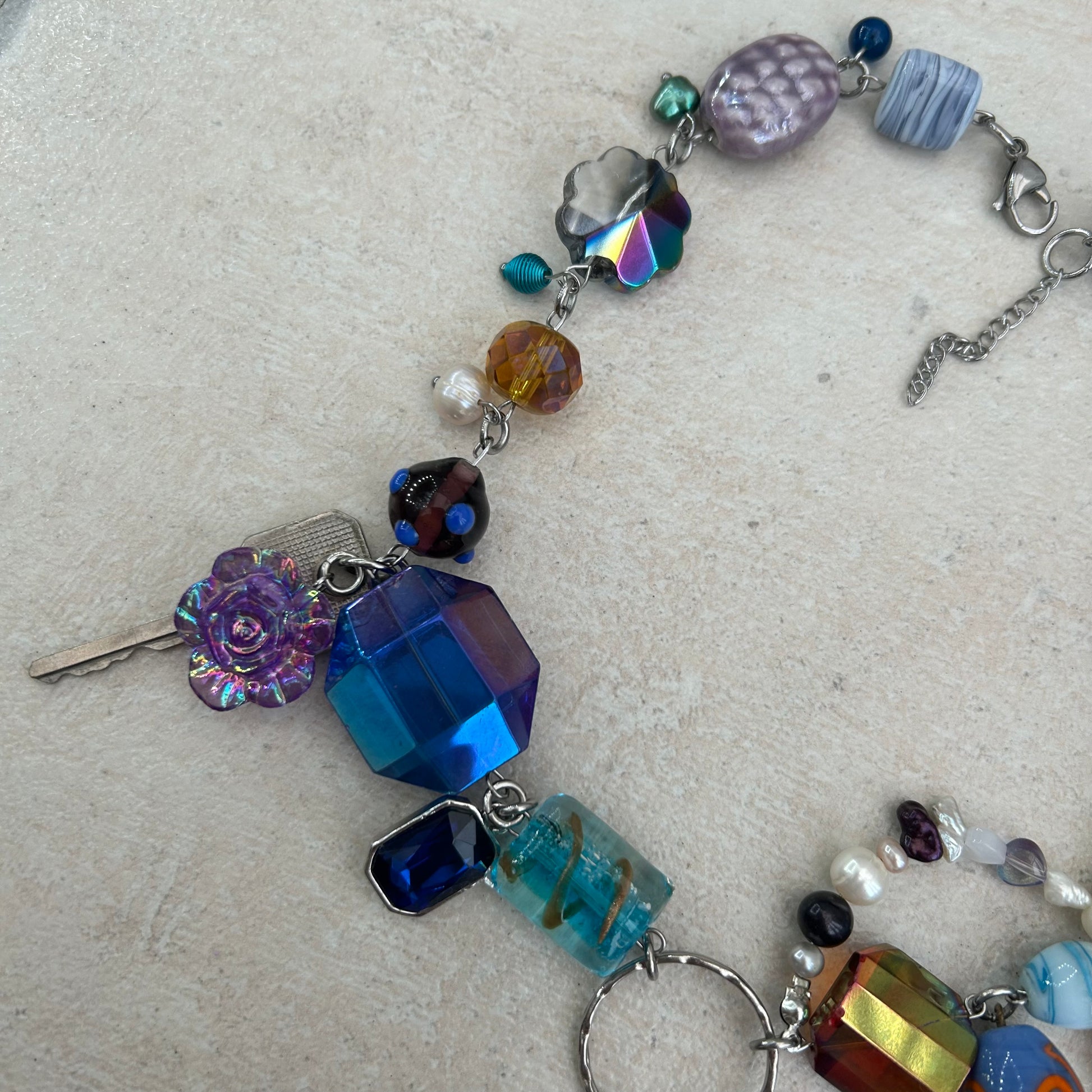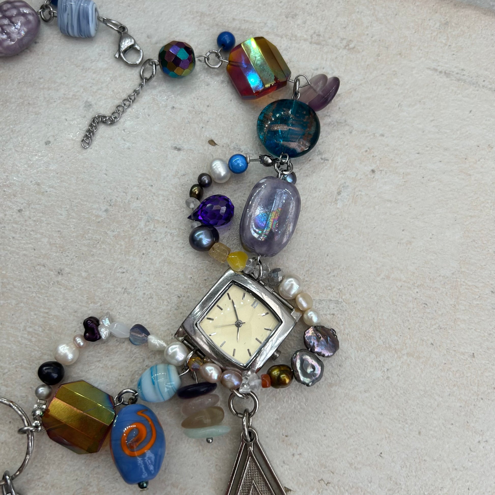 Made with glass beads, freshwater pearls, glas s