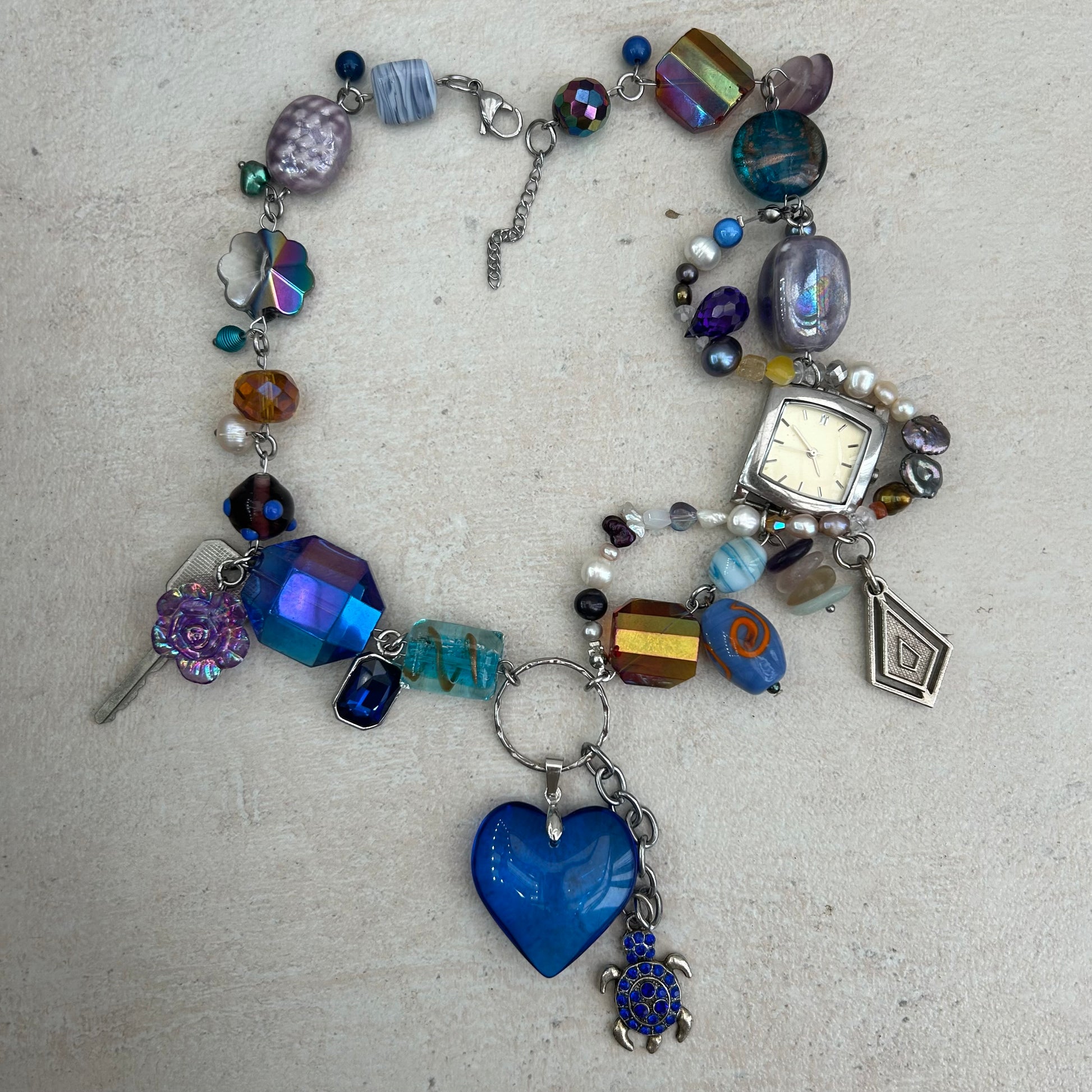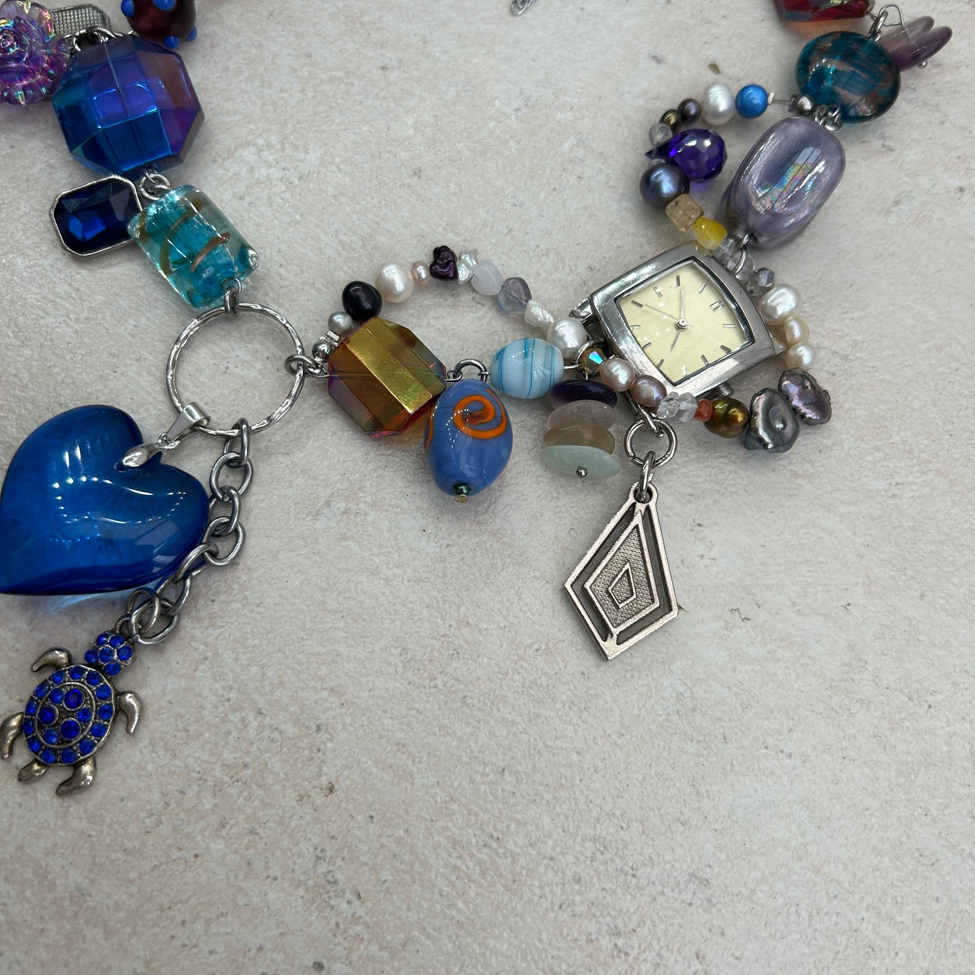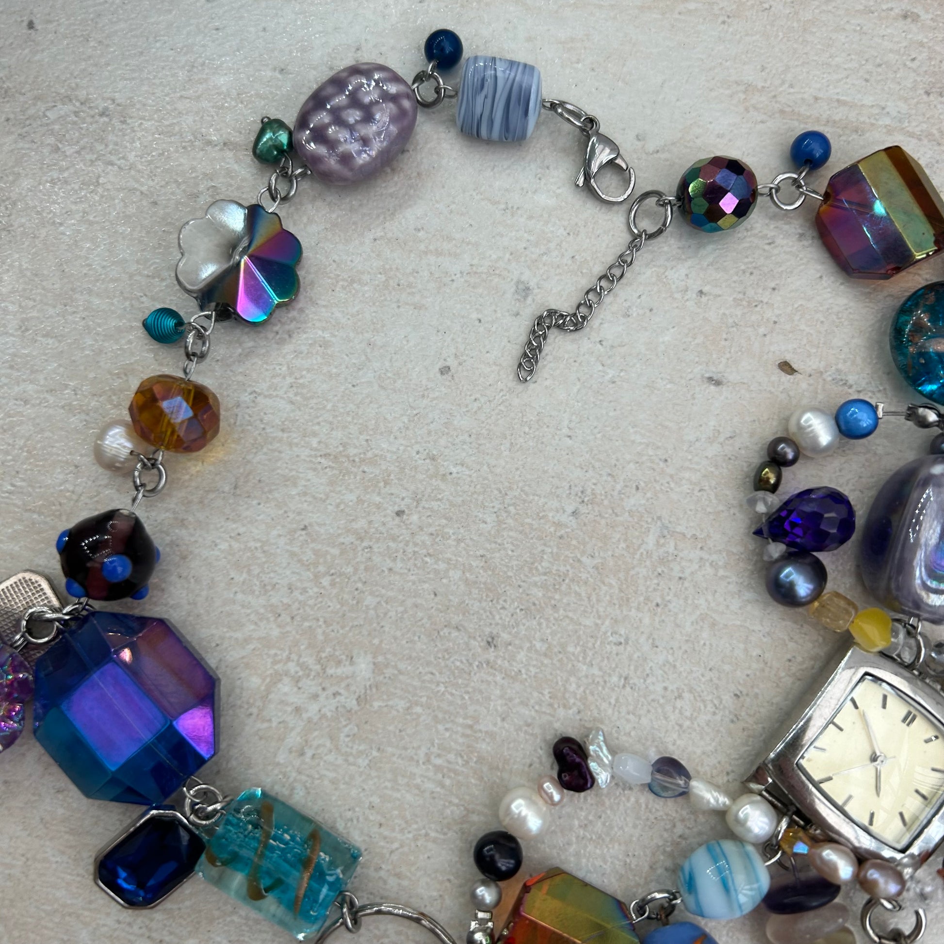 Made with glass beads, freshwater pearls, glas s